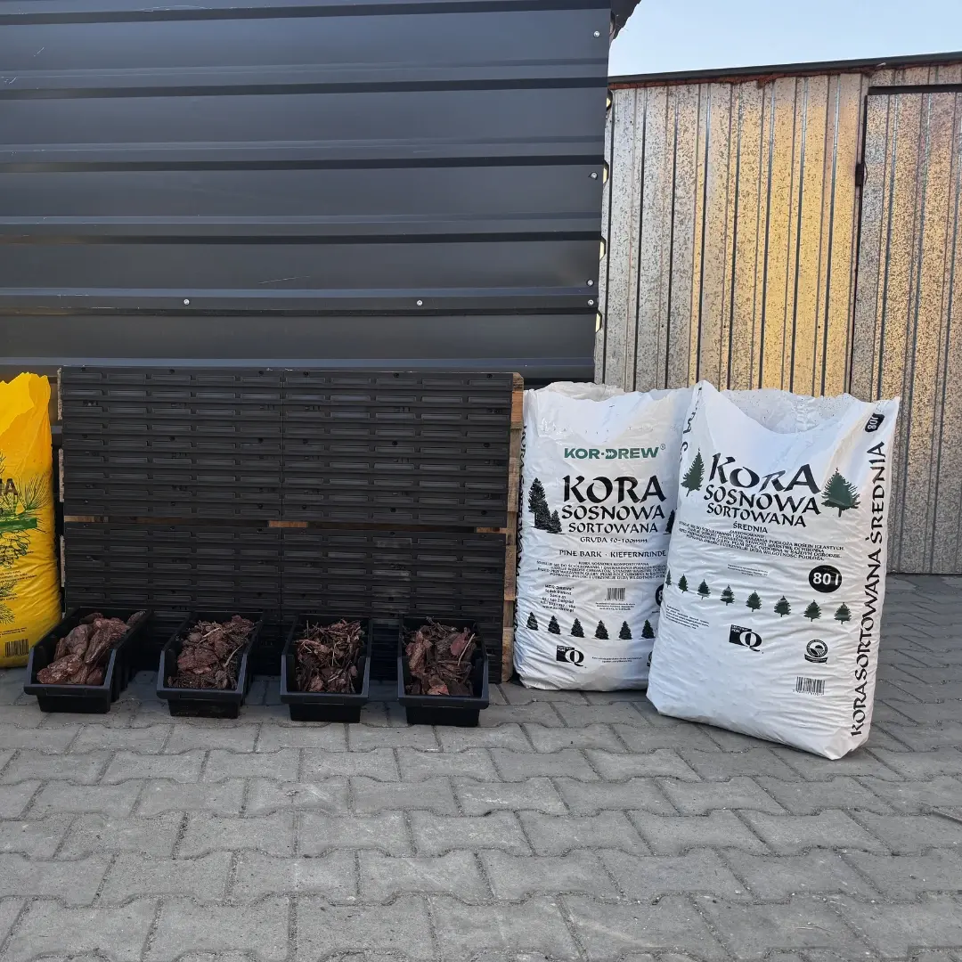Kora sosnowa gruba to efektowna i bardzo trwała frakcja kory ogrodowej o granulacji 50–100 mm. Duże kawałki kory świetnie sprawdzają się przy drzewach, większych krzewach oraz na rozległych rabatach. Dzięki swojej strukturze rozkłada się wolniej niż drobniejsze frakcje i przez długi czas zachowuje estetyczny wygląd.